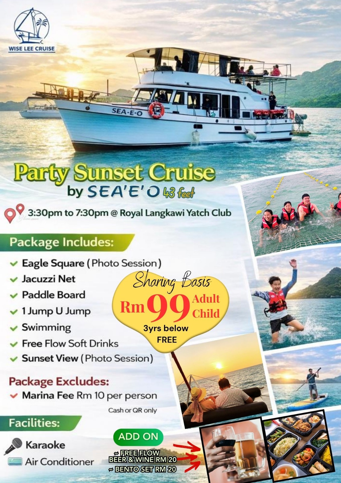 Please note that each booking are categorized as group. Wise Lee will assign group of passengers to yacht by random basis.Please inform us thru Whatsapp if you have multiple booking transaction which prefer to be combine as a group instead.If pax number exceed more than 30 pax, please Whatsapp us directly for better arrangement.Terms and conditions applied.